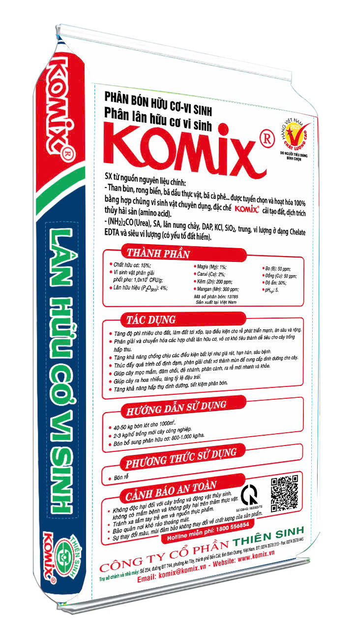 - Vi sinh vật phân giải phốt pho: 1,0x106 CFU/g;