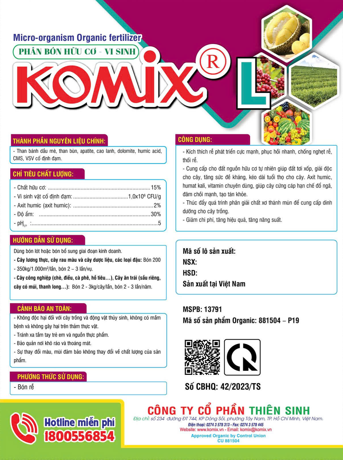 - Vi sinh vật cố định đạm: 1,0x106 CFU/g;