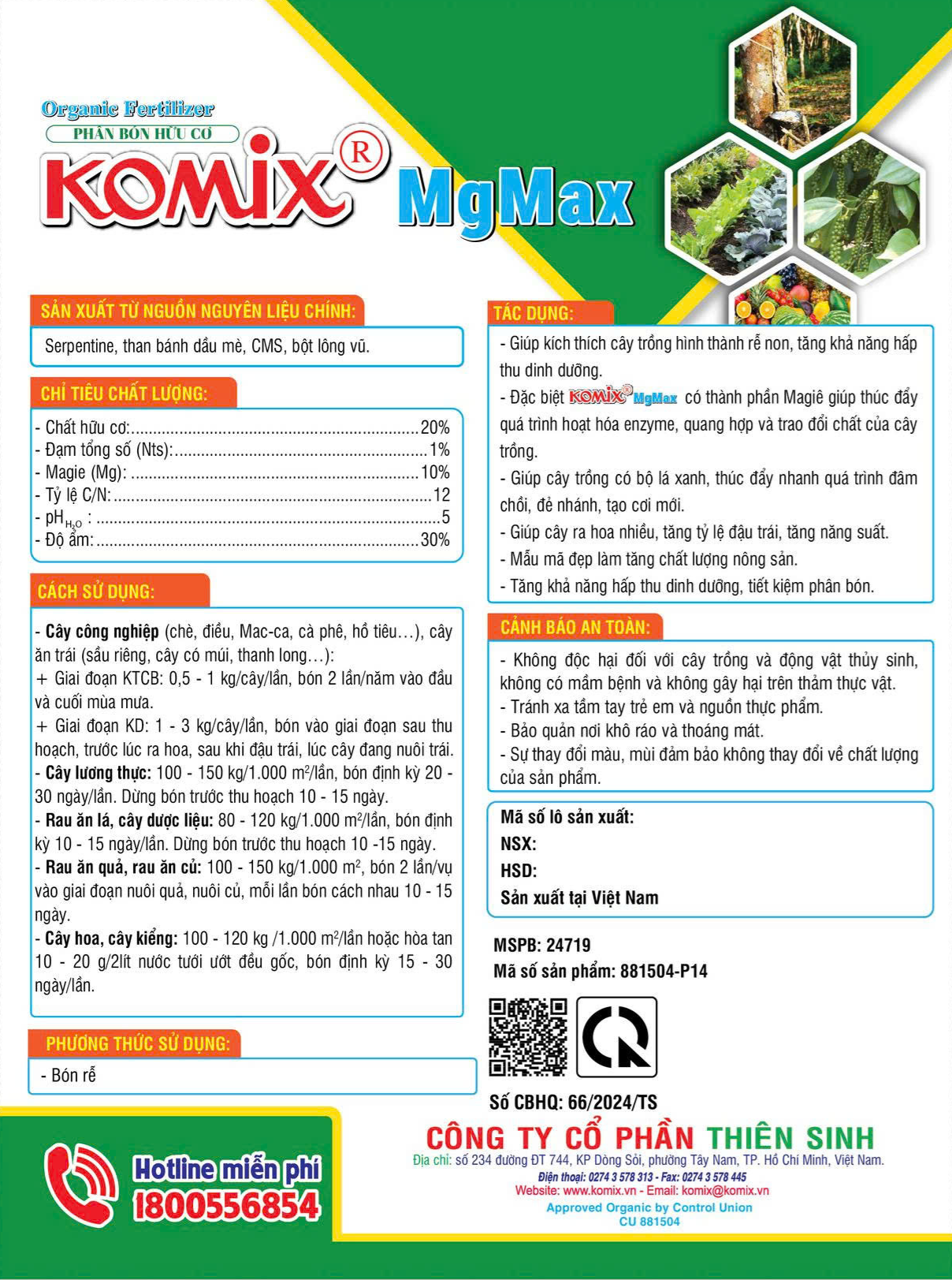 - Đặc biệt Komix" MgMax có thành phần Magiê giúp thúc đẩy quá trình hoạt hóa enzyme, quang hợp và trao đổi chất của cây trồng.