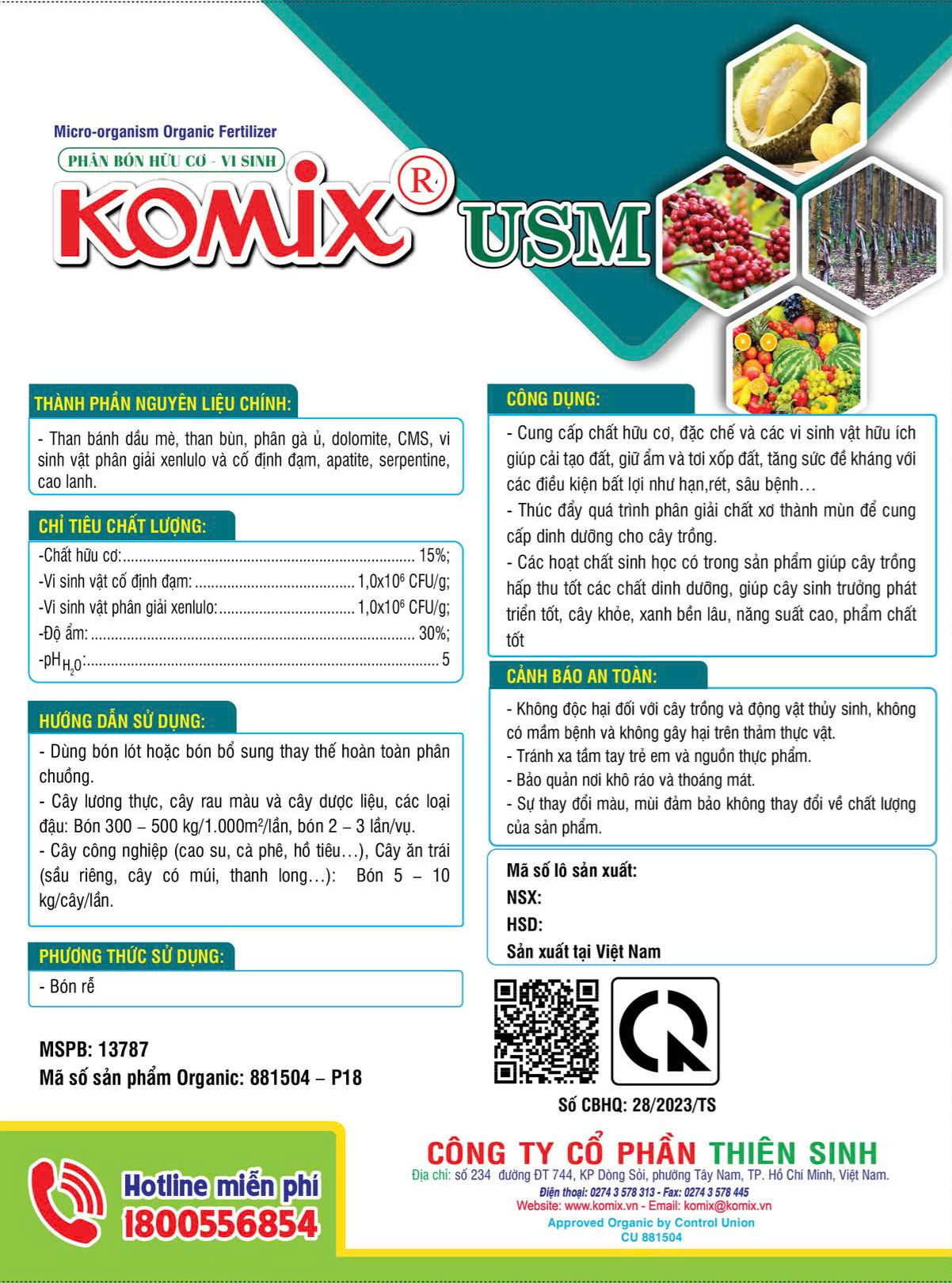 - Vi sinh vật phân giải xenlulo (Trichoderma sp.,…): 1,0x106 CFU/g;