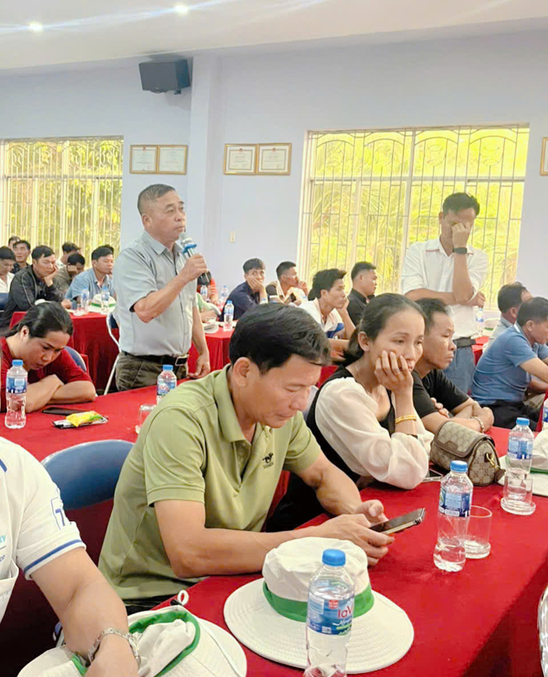 Sau phần tham quan, buổi tọa đàm và trao đổi kinh nghiệm canh tác diễn ra trong không khí cởi mở và thân tình. Nhiều nông dân đã chia sẻ về quá trình sử dụng phân bón KOMIX trên cây hồ tiêu, cà phê, sầu riêng và một số cây trồng khác, đồng thời bày tỏ sự tin tưởng vào chất lượng sản phẩm và hiệu quả mang lại cho vườn cây. Các đại lý cũng góp ý chân thành về nhu cầu thị trường ngày càng ưa chuộng những sản phẩm phân bón mang tính bền vững, thân thiện môi trường, giúp cây trồng tăng năng suất và chất lượng. Cuối buổi toạ đàm, các đại lý và Bà con Nông dân mong muốn cùng công ty đồng hành phát triển bền vững trong thời gian tới.