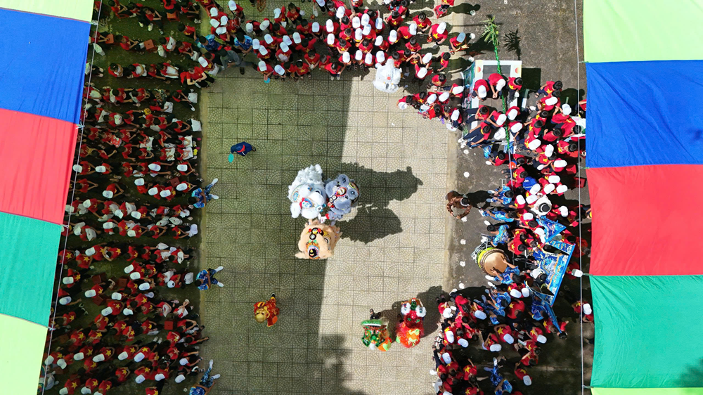 - Tại chương trình, các Em học sinh được thưởng thức các tiết mục múa lân, văn nghệ và các hoạt động trải nghiệm như: trang trí mâm ngũ quả, làm đầu lân, lồng đèn.
